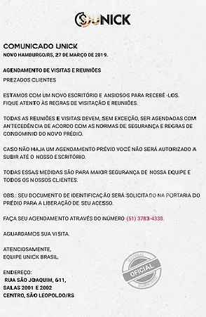 Situada no Centro de São Leopoldo/RS com uma das suas sedes, a UNICK é uma empresa inovadora que existe desde 2013 e em 2017 passou a disponibilizar a sua plataforma com a MISSÃO de trazer a luz do conhecimento sobre Mercado Financeiro para que haja transformação na vida de seus clientes e contribua para o crescimento pessoal e financeiro de forma sustentável. Com sede em Belize e Londres, a UNICK pode atuar legalmente no mercado financeiro MUNDIAL. Possui certificados que respaldam suas operações. Registro de legalidade nº 254900K1GK8QPOY02L60 órgão mundial LEI (Legal Entity Identifier). Conheça agora mesmo um pouco mais da nossa empresa UNICK ACADEMY ®.